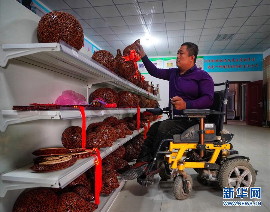 帶領(lǐng)鄉(xiāng)親們用野生核桃殼做工藝品