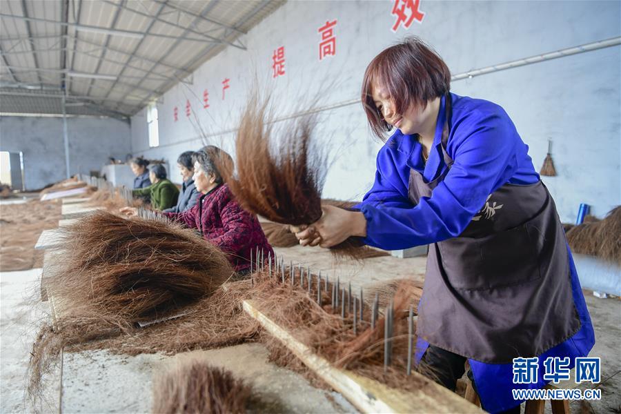 村民在篩選棕絲