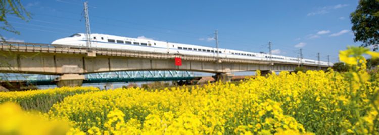 3月22日,一列高鐵列車駛過江蘇南通海安市的油菜花田 徐勁柏攝