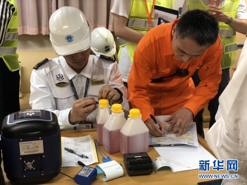 6月1日,深圳海事局執(zhí)法人員正使用快速燃油檢驗儀檢測燃油。