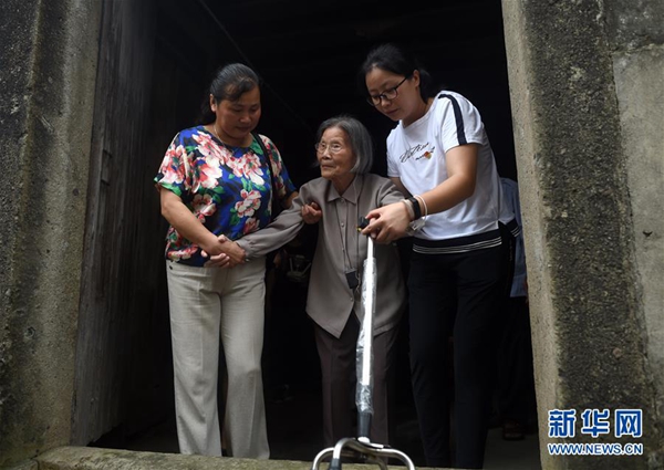6月30日,呂銀芬(中)在家人陪同下回到七一村。新華社記者 韓傳號(hào) 攝