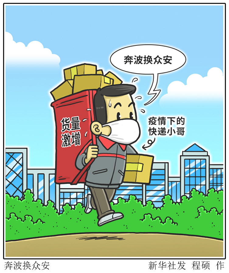 新華社西安2月4日電(記者姜辰蓉、李亞楠)早晨6時(shí)30分,31歲的快遞員徐國(guó)斌走進(jìn)散發(fā)著消毒水味的貨倉(cāng)。他和同事們都被口罩遮去了半張臉,一天的配送即將開(kāi)始,米面糧油和許多其他生活用品,將被送往等待著的購(gòu)物者處。在這個(gè)非常時(shí)期,網(wǎng)購(gòu)成了許多人的不二選擇。