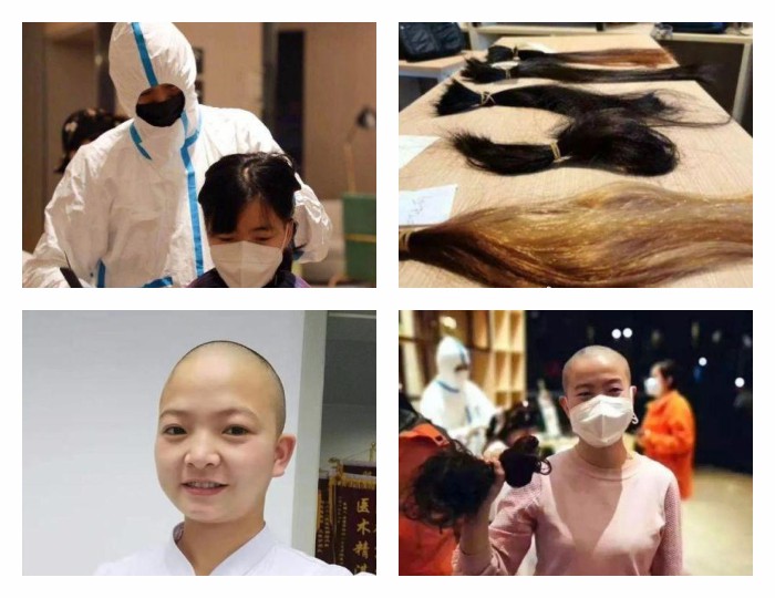西安國際中心醫(yī)院醫(yī)療隊的女醫(yī)護正在剪發(fā)