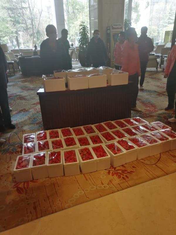 18日,河北省部分援鄂醫(yī)護(hù)人員將返回河北,獲悉這個(gè)信息后,在17日上午,武漢市江岸方艙醫(yī)院治愈的患者將百余箱新鮮草莓送到了河北醫(yī)護(hù)人員手里。