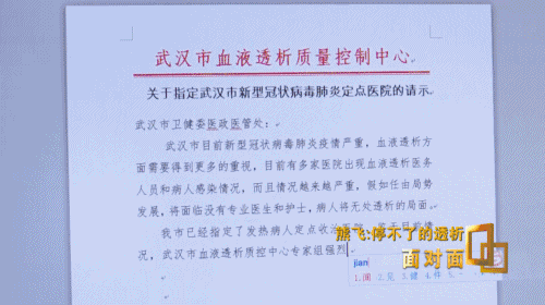 武漢市血液透析質(zhì)量控制中心主任 熊飛:這些病人訴求很簡(jiǎn)單,能有地方透析。但隨著疫情發(fā)展,對(duì)我們醫(yī)生的壓力和考驗(yàn)越來(lái)越大。讓你在非感染區(qū)透析會(huì)導(dǎo)致其他感染,這就違反了我的底線原則。不讓你透析,一個(gè)活生生的生命,所以我們當(dāng)時(shí)壓力很大。我就把病人的數(shù)據(jù)提交給上級(jí)部門(mén),告訴他有多少病人如果不透析,超過(guò)多長(zhǎng)時(shí)間可能會(huì)面臨著死亡,領(lǐng)導(dǎo)也重視這個(gè)問(wèn)題。