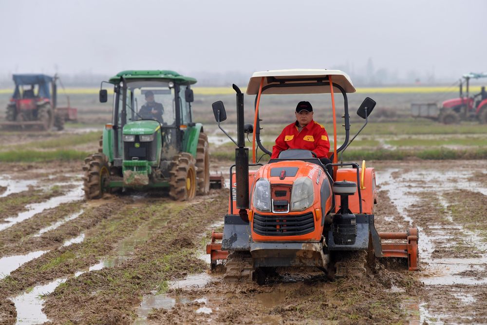 在江西省南昌縣蔣巷鎮(zhèn),當(dāng)?shù)剞r(nóng)民駕駛拖拉機(jī)在高標(biāo)準(zhǔn)農(nóng)田里進(jìn)行春耕翻地作業(yè)。新華社記者 彭昭之 攝