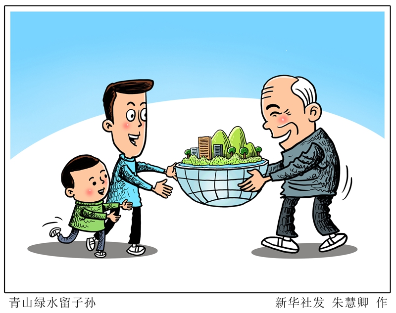 漫畫:青山綠水留子孫 新華社發(fā) 朱慧卿 作