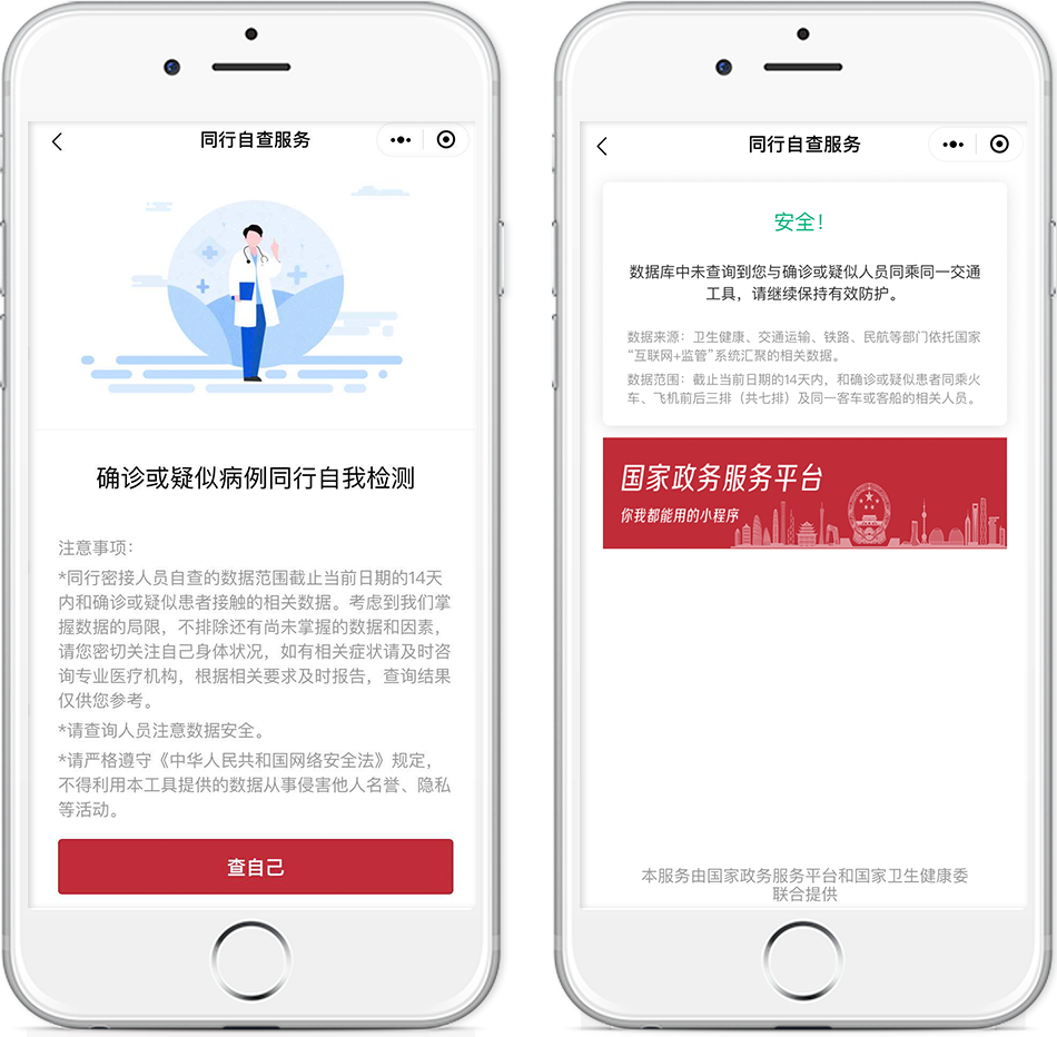 只需刷臉登錄,即可查詢你是否是“密切接觸者”,是否曾和新冠肺炎確診/疑似患者或已檢出的無癥狀感染者同乘過公共交通,助你自查風險、主動防護。