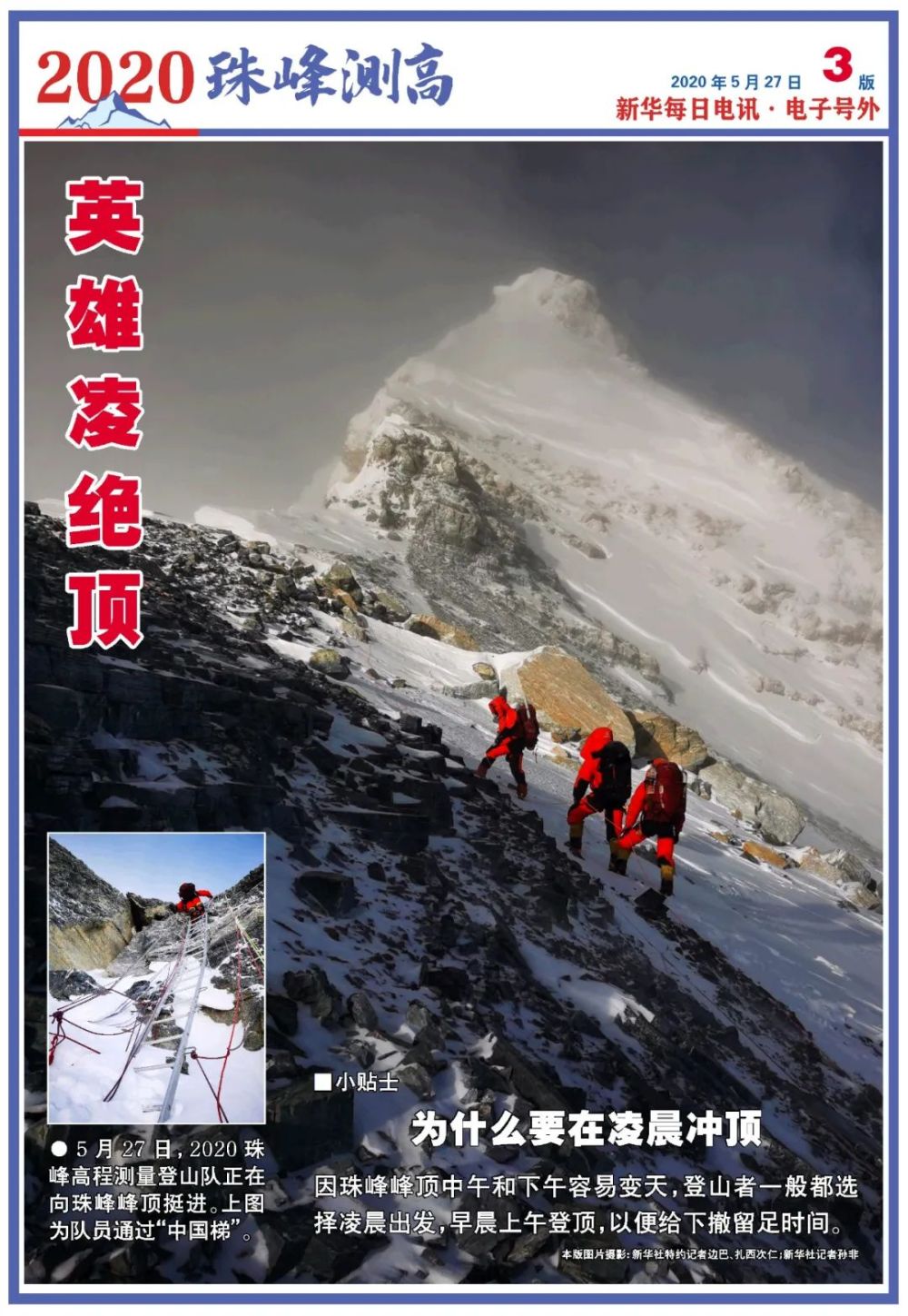 5月27日,2020珠峰高程測量登山隊