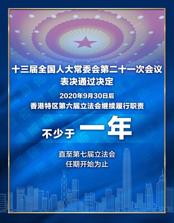 第十三屆全國人民代表大會常務(wù)委員會第二十一次會議審議了《國務(wù)院關(guān)于提請全國人民代表大會常務(wù)委員會就香港特別行政區(qū)第六屆立法會繼續(xù)運作作出決定的議案》。上述議案是應香港特別行政區(qū)行政長官向中央人民政府報送的有關(guān)報告提出的。香港特別行政區(qū)行政長官會同行政會議因應當?shù)匦鹿诜窝滓咔榈膰谰蝿菀褯Q定將香港特別行政區(qū)第七屆立法會選舉推遲一年,在此情況下香港特別行政區(qū)立法機關(guān)將出現(xiàn)空缺。為維護香港特別行政區(qū)憲制秩序和法治秩序,確保香港特別行政區(qū)政府正常施政和社會正常運行,根據(jù)《中華人民共和國憲法》和《中華人民共和國香港特別行政區(qū)基本法》的有關(guān)規(guī)定,全國人民代表大會常務(wù)委員會作出如下決定: