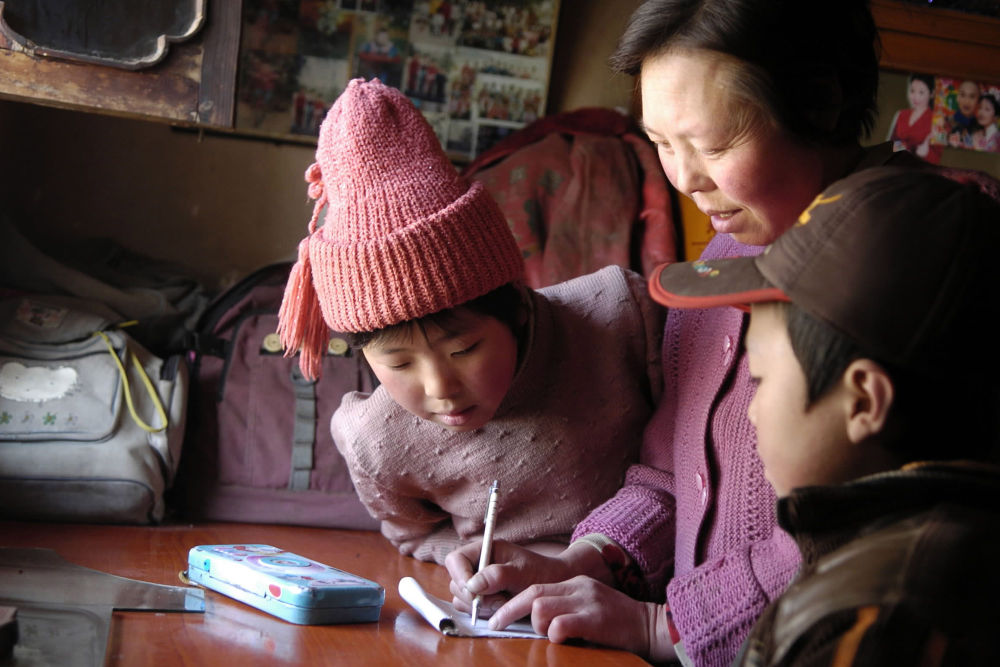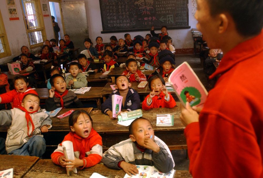 ↑ 2006年1月13日,“掃盲夜?!睂W員在甘肅漳縣三岔鎮(zhèn)中心小學上課。