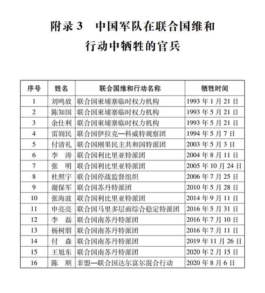 附錄3 中國軍隊在聯(lián)合國維和行動中犧牲的官兵