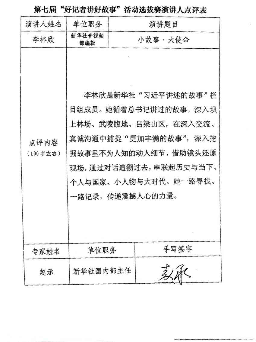 趙承點評李林欣《小故事·大使命》