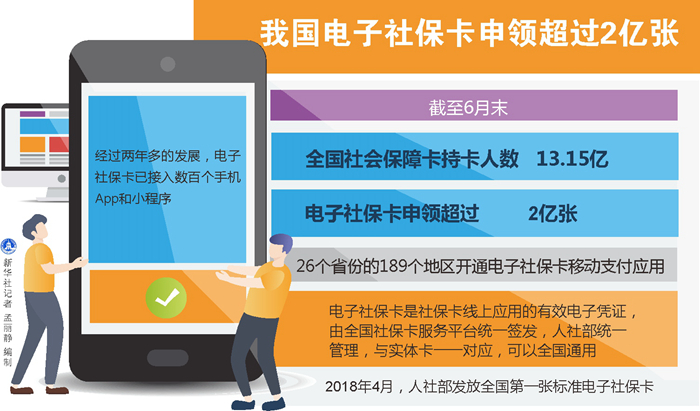 新華社北京10月6日電(記者姜琳)人力資源和社會保障部近日發(fā)布的數(shù)據(jù)顯示,截至6月末,全國社會保障卡持卡人數(shù)13.15億,電子社??ㄉ觐I(lǐng)超過2億張,26個省份的189個地區(qū)開通電子社保卡移動支付應(yīng)用。