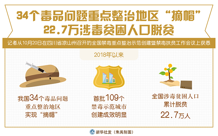 新華社成都10月20日電(記者熊豐)2018年以來,我國34個(gè)毒品問題重點(diǎn)整治地區(qū)實(shí)現(xiàn)“摘帽”,首批109個(gè)禁毒示范城市創(chuàng)建成效明顯,全國涉毒貧困人口累計(jì)脫貧22.7萬人。