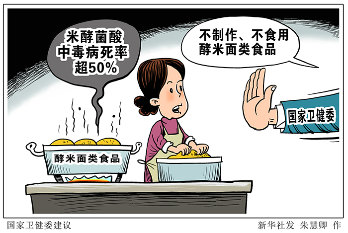 提示指出,酵米面中毒的主要原因是使用了發(fā)霉變質(zhì)的原料,雖然通過(guò)挑選新鮮無(wú)霉變?cè)?、勤換水能夠減少被致病菌污染的機(jī)會(huì),但為保證生命安全,最好的預(yù)防措施是不制作、不食用酵米面類食品。