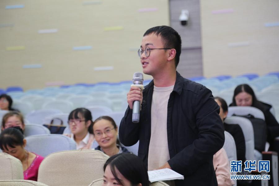 在重慶市南岸區(qū)南坪實(shí)驗(yàn)小學(xué),唐大鵬在教研活動(dòng)上發(fā)言(2019年10月22日攝)。新華社發(fā)(張劍 攝)