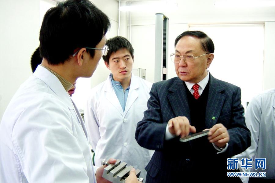 中國工程院院士、哈爾濱工業(yè)大學教授杜善義(右)為學生講解復合材料(資料照片)。新華社發(fā)
