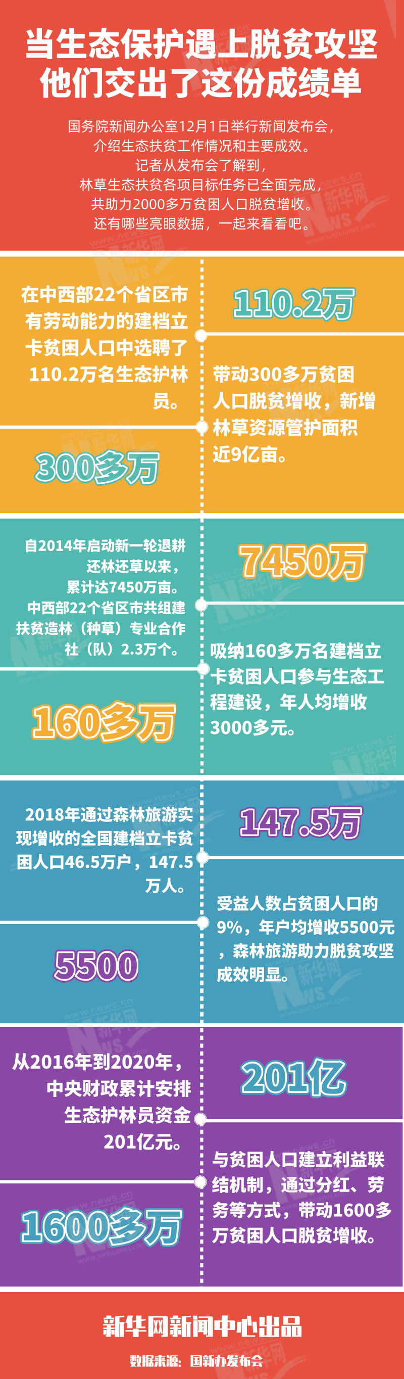 新華網(wǎng)北京12月1日電(汪亞)國務(wù)院新聞辦公室于今日舉行新聞發(fā)布會(huì),介紹生態(tài)扶貧工作情況和主要成效。國家林業(yè)和草原局副局長李春良在發(fā)布會(huì)透露,黨的十八大以來,林草生態(tài)扶貧各項(xiàng)目標(biāo)任務(wù)全面完成,在推進(jìn)生態(tài)補(bǔ)償扶貧、推進(jìn)國土綠化扶貧、推進(jìn)生態(tài)產(chǎn)業(yè)扶貧、推進(jìn)定點(diǎn)幫扶縣脫貧摘帽等四大方面發(fā)力,共助力2000多萬貧困人口脫貧增收。