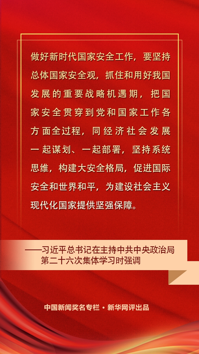 習(xí)近平在中央政治局第二十六次集體學(xué)習(xí)時強調(diào) 堅持系統(tǒng)思維構(gòu)建大安全格局 為建設(shè)社會主義現(xiàn)代化國家提供堅強保障