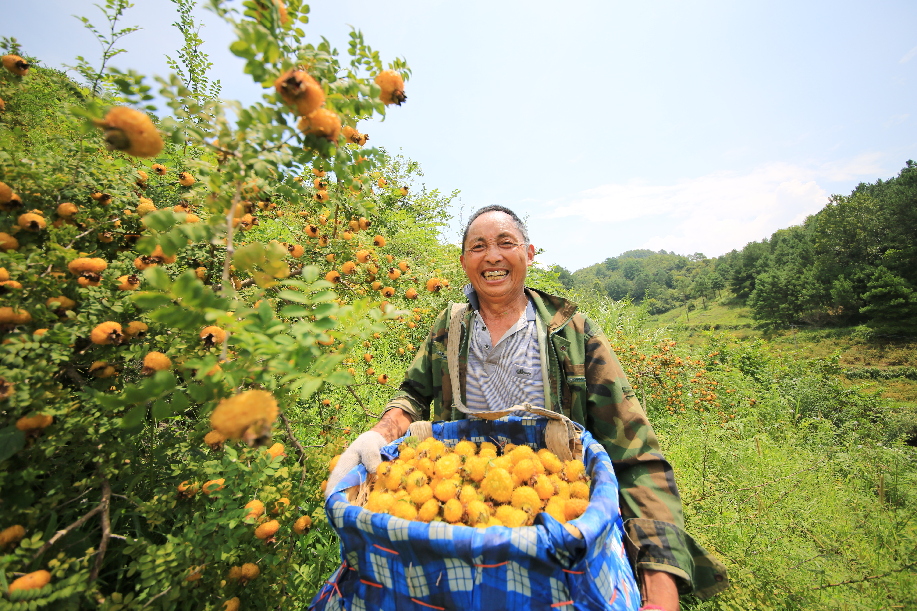 ????刺梨產(chǎn)業(yè)正成為群眾增收致富的好幫手,圖為貴州省黔南州貴定縣昌明鎮(zhèn)火炬村村民喜迎刺梨豐收,臉上掛滿豐收的喜悅。石銀超 攝
