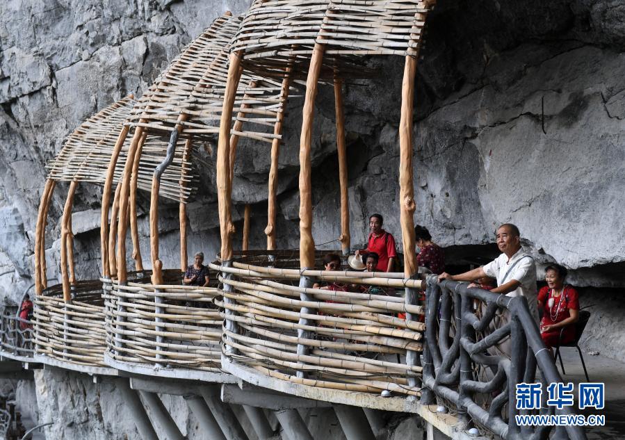 游客在廣西羅城仫佬族自治縣棉花天坑景區(qū)旅游觀光(9月15日攝)。新華社記者 陸波岸 攝