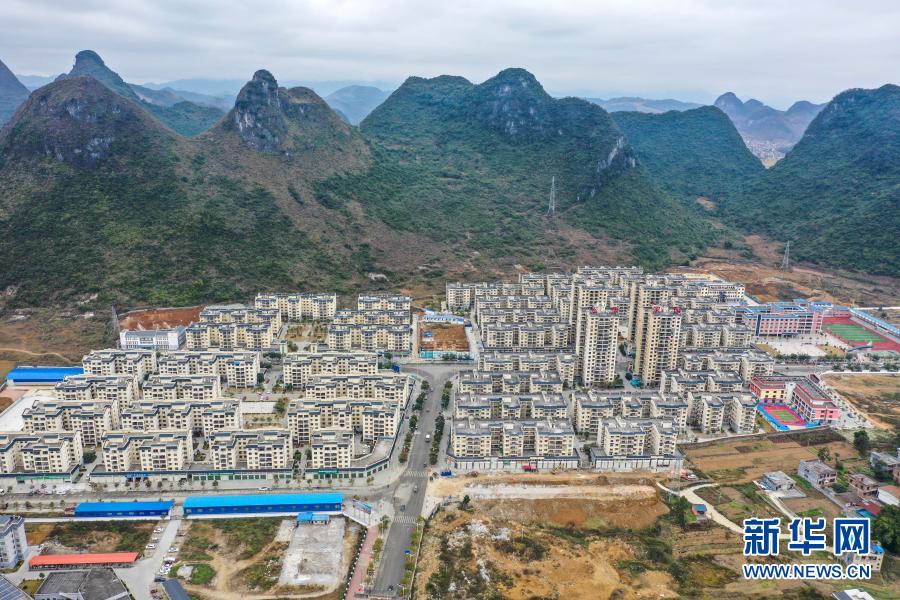 廣西羅城仫佬族自治縣易地扶貧搬遷安置點(diǎn)“仫佬家園”(12月16日攝,無人機(jī)照片)。新華社記者 曹祎銘 攝