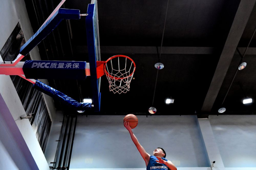 12月17日,蘇柯帆在籃球館里打籃球。