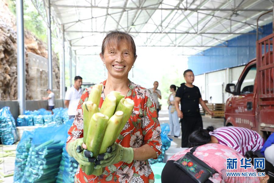 貴州省黔南布依族苗族自治州長順縣核子村村民在打包收獲的茭白(7月6日攝)。新華社發(fā)(朱濤 攝)