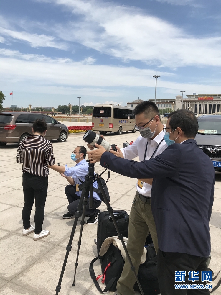 5月20日,全國政協(xié)十三屆三次會議召開新聞發(fā)布會。大會新聞發(fā)言人郭衛(wèi)民向中外媒體介紹本次大會有關情況并回答記者提問。圖為本網(wǎng)記者在人民大會堂東門外廣場做直播前準備工作。新華網(wǎng)記者 周紅軍? 攝