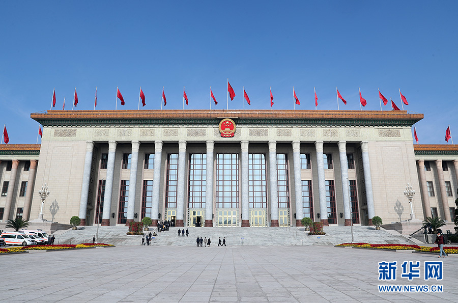 十三屆全國人大三次會議22日上午9時在人民大會堂開幕,新華網(wǎng)進行現(xiàn)場直播。圖為人民大會堂外景。新華網(wǎng) 翟子赫 攝