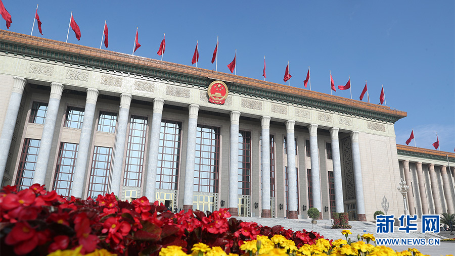十三屆全國人大三次會議22日上午9時在人民大會堂開幕,新華網(wǎng)進行現(xiàn)場直播。圖為人民大會堂外景。新華網(wǎng) 翟子赫 攝