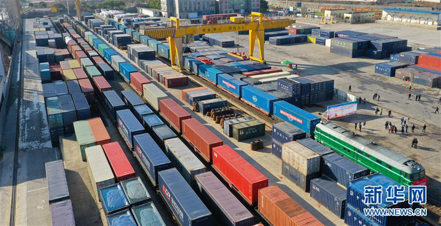 2月17日,中歐班列(南昌)在南昌向塘鐵路口岸等待發(fā)車(無人機(jī)照片)。 新華社記者 胡晨歡 攝
