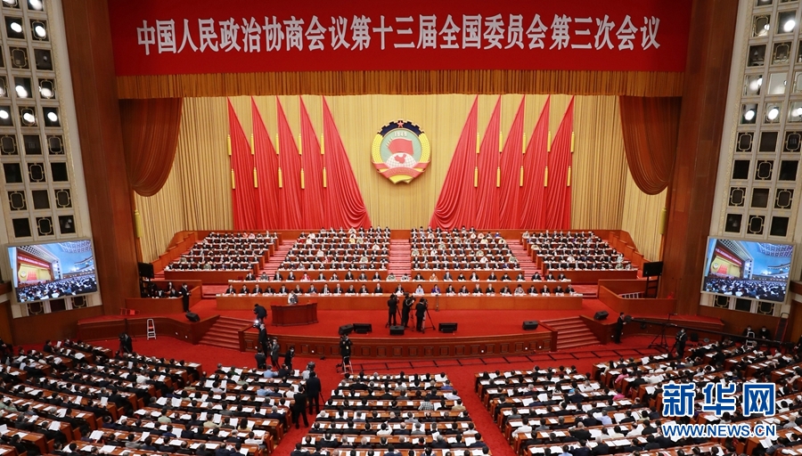 5月24日,全國(guó)政協(xié)十三屆三次會(huì)議在北京人民大會(huì)堂舉行第二次全體會(huì)議。 新華社記者 丁林 攝