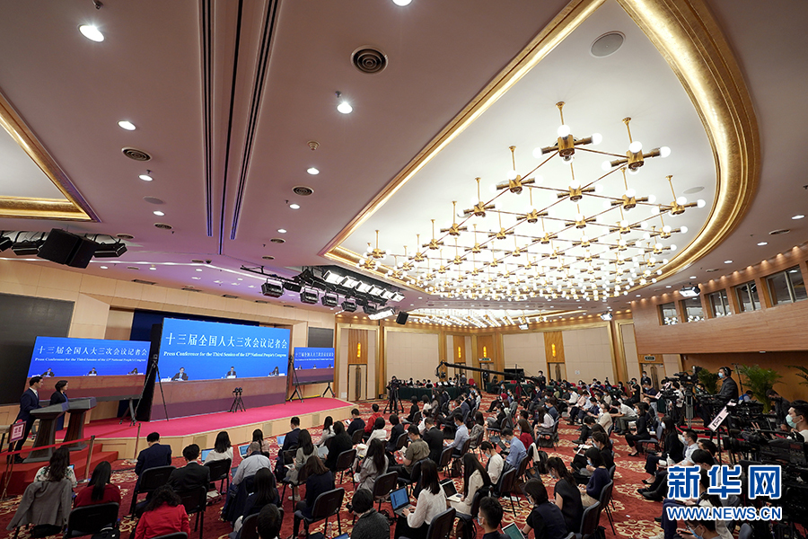 5月28日,國務(wù)院總理李克強(qiáng)在北京人民大會堂出席記者會并回答中外記者提問。這是記者在梅地亞中心多功能廳采訪。 新華社記者 劉金海 攝