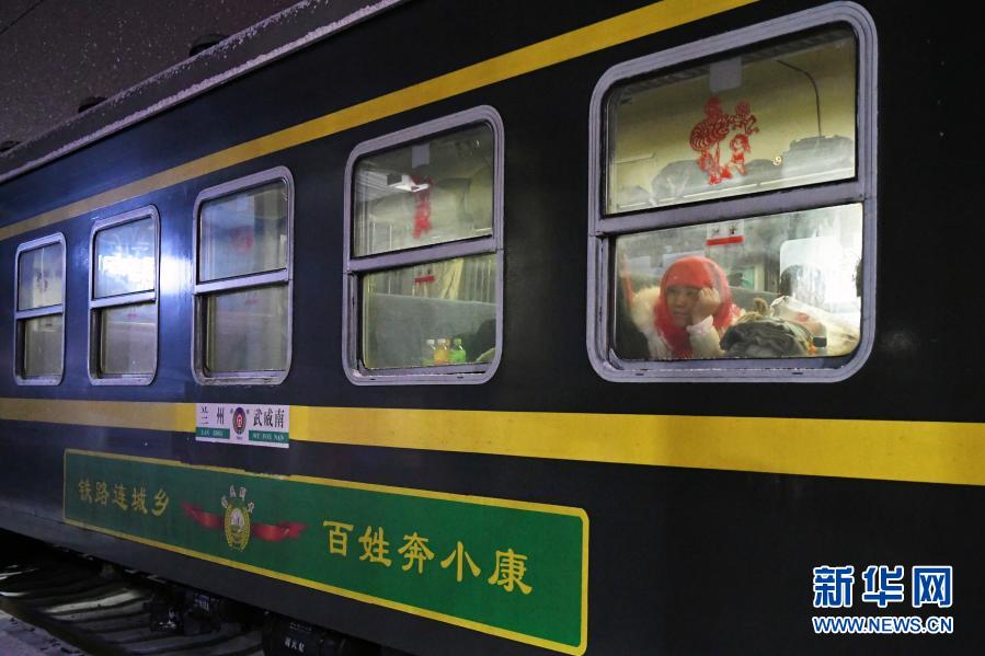 2020年1月10日,由蘭州開往武威南的7505次列車停靠在永登站,一名旅客望向窗外。由甘肅蘭州開往武威南的7505次列車是一列老式綠皮車,串聯(lián)起蘭州和武威兩座城市之間的十幾座小站。因為票價便宜、乘坐方便,它成為沿線鄉(xiāng)村群眾進(jìn)城購物、售賣農(nóng)產(chǎn)品、探親訪友、外出打工的首選交通工具。