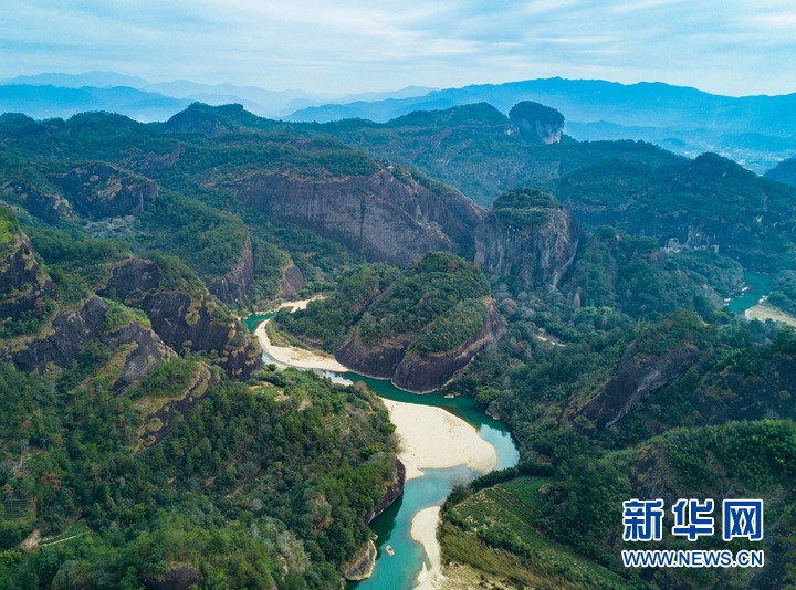 武夷山風景名勝區(qū)內(nèi)的綠水青山(無人機照片,2021年1月3日攝)。新華社記者宋為偉攝