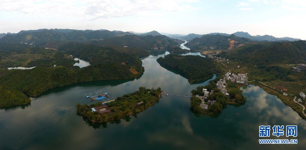 這是廣西巴馬瑤族自治縣賜福湖和長壽島景觀(2018年11月8日攝,無人機照片)。新華社記者 陸波岸 攝