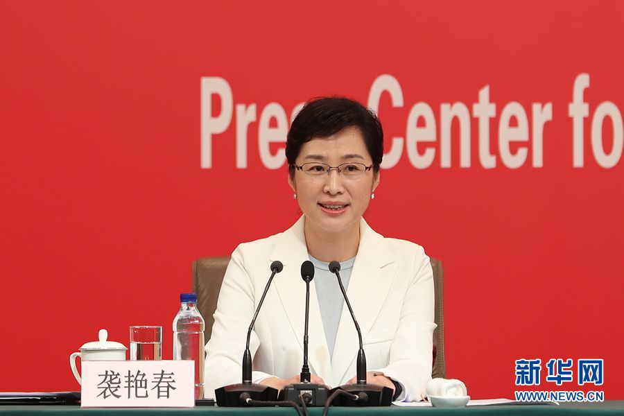 9月26日,慶祝中華人民共和國成立70周年活動新聞中心在北京梅地亞中心二層新聞發(fā)布廳舉辦第二場新聞發(fā)布會。圖為慶祝中華人民共和國成立70周年活動新聞中心負責人襲艷春。新華網記者 郭小天 攝