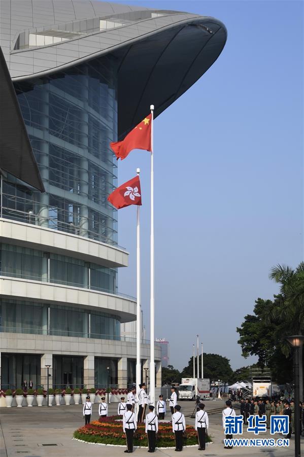 10月1日,香港特區(qū)政府在金紫荊廣場舉行升旗儀式,慶祝中華人民共和國成立70周年。新華社記者 呂小煒 攝