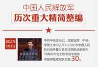 習近平3日在紀念中國人民抗日戰(zhàn)爭暨世界反法西斯戰(zhàn)爭勝利70周年大會上的講話中宣布:中國將裁減軍隊員額30萬。