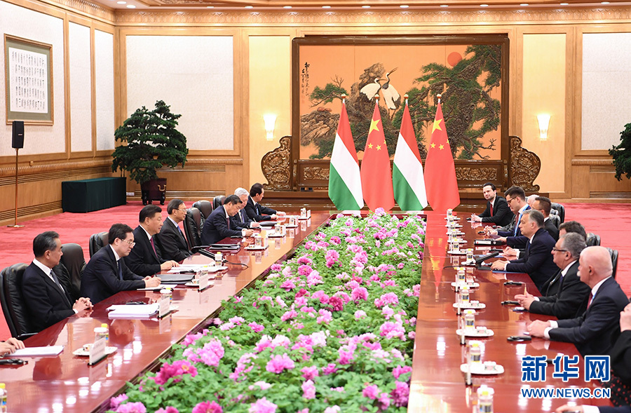 習近平指出,2017年,我和總理先生共同宣布兩國建立全面戰(zhàn)略伙伴關(guān)系,中匈關(guān)系進入“換擋提速”的歷史新階段。今年是中匈建交70周年。中方期待同匈方一道努力,推動兩國全面戰(zhàn)略伙伴關(guān)系邁向新高度。雙方要保持高層交往熱度,做好政治引領(lǐng);提升互尊互信水平,深化戰(zhàn)略認同;加大務(wù)實合作力度,實現(xiàn)互利共贏;拓寬人文交流廣度,促進民心相通。下階段,我們要落實好匈塞鐵路等“一帶一路”框架內(nèi)合作,爭取更多實質(zhì)成果。中國-中東歐合作是中歐關(guān)系重要組成部分,希望匈方為此發(fā)揮更大作用。