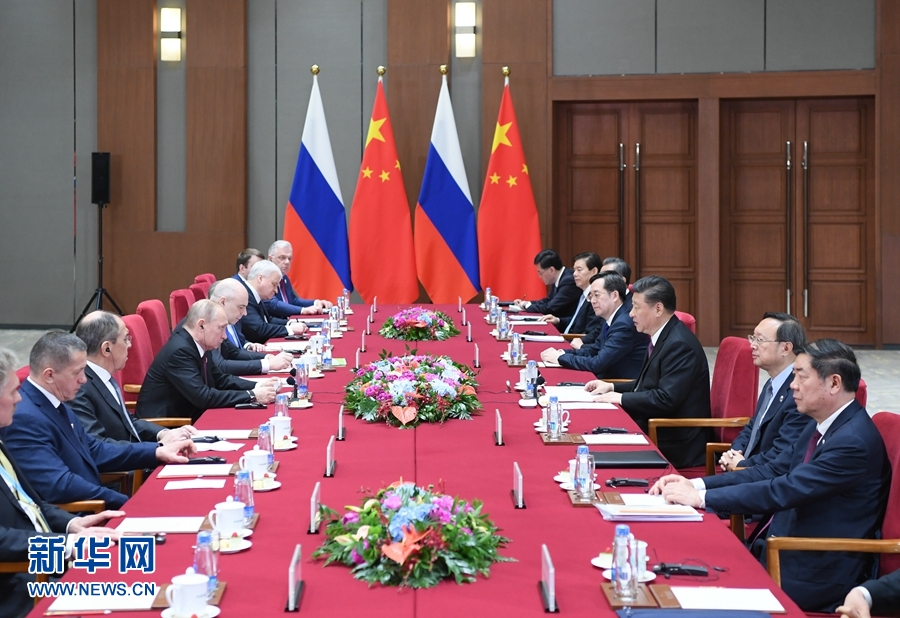 習(xí)近平強(qiáng)調(diào),當(dāng)前國(guó)際形勢(shì)復(fù)雜深刻演變,中俄雙方都致力于實(shí)現(xiàn)各自國(guó)家發(fā)展和民族振興,面臨共同的任務(wù)和挑戰(zhàn)。我們要始終將彼此視為重要發(fā)展機(jī)遇,相互支持,相互借力,實(shí)現(xiàn)同步振興,攜手構(gòu)建人類(lèi)命運(yùn)共同體。俄羅斯是共建“一帶一路”倡議重要的合作伙伴。共建“一帶一路”倡議同歐亞經(jīng)濟(jì)聯(lián)盟對(duì)接是區(qū)域經(jīng)濟(jì)合作的典范。下階段,雙方要繼續(xù)推進(jìn)經(jīng)貿(mào)、能源、科技、航天、互聯(lián)互通、地方、人文等領(lǐng)域合作。中方將向俄方提供一對(duì)大熊貓開(kāi)展合作研究。