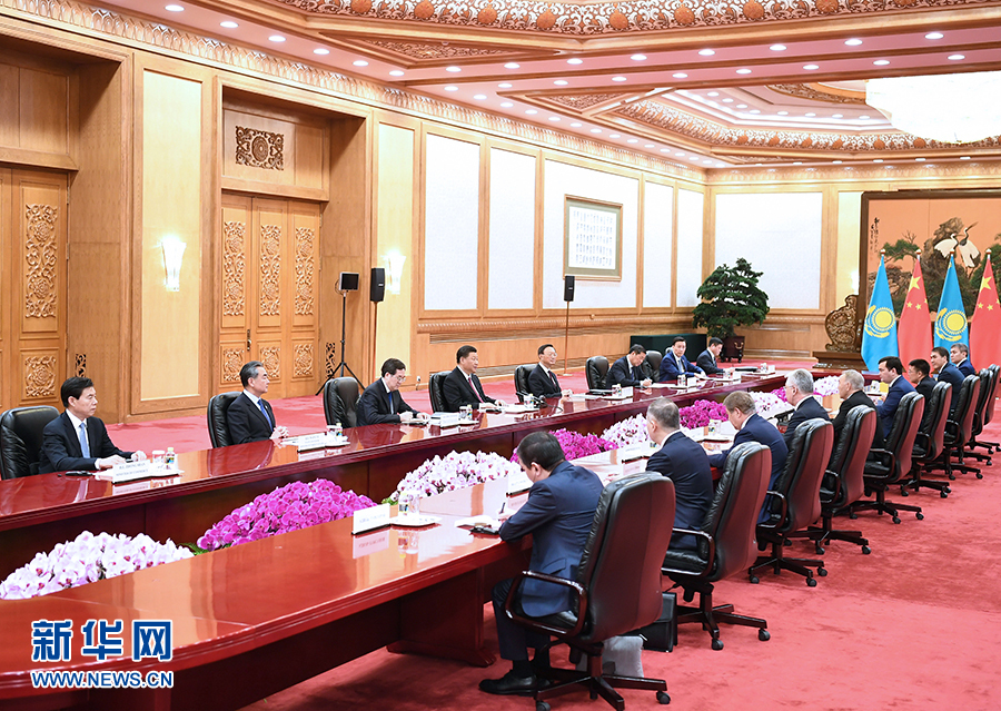 4月28日,國家主席習(xí)近平在北京人民大會堂會見哈薩克斯坦首任總統(tǒng)納扎爾巴耶夫。 新華社記者 謝環(huán)馳 攝