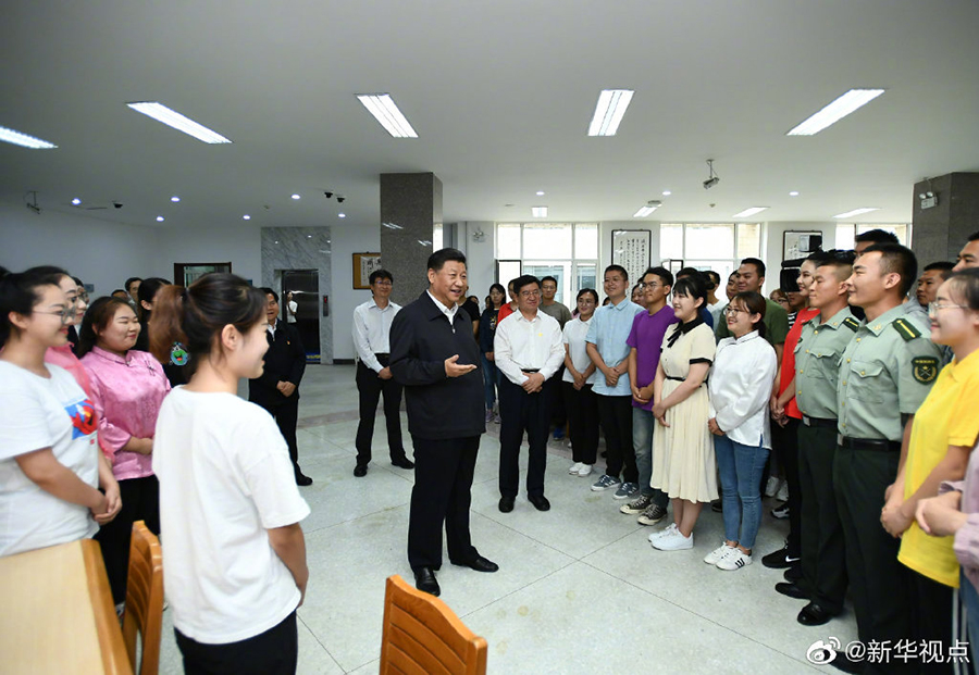 16日上午,正在內(nèi)蒙古考察調(diào)研的習(xí)近平總書記來到內(nèi)蒙古大學(xué),走進(jìn)圖書館同學(xué)生們親切交談。習(xí)近平指出,少年強(qiáng)則中國(guó)強(qiáng)。看到年青人健康聰明、奮發(fā)向上,充滿正能量,心里十分高興。長(zhǎng)江后浪推前浪,青出于藍(lán)而勝于藍(lán),未來是屬于年青人的。在中華民族偉大復(fù)興的進(jìn)程中,你們生逢其時(shí),何其幸也。再過30年,到本世紀(jì)中葉實(shí)現(xiàn)第二個(gè)百年奮斗目標(biāo)的時(shí)候,你們正好是國(guó)家的骨干和棟梁。大家要志存高遠(yuǎn)、腳踏實(shí)地,學(xué)好知識(shí),打好基礎(chǔ),增長(zhǎng)才干,將來為中華民族偉大復(fù)興貢獻(xiàn)自己的智慧和力量。 (文字:張曉松、朱基釵 攝影:謝環(huán)馳、李學(xué)仁)
