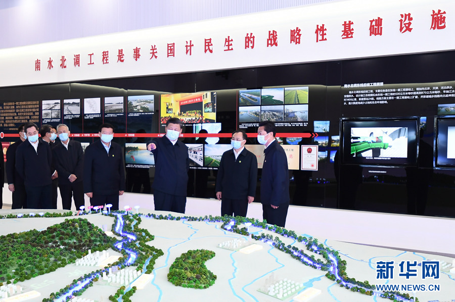 一個(gè)大型沙盤模型直觀地呈現(xiàn)了中國大地上水資源大范圍大規(guī)??鐓^(qū)域調(diào)配的壯闊景象,習(xí)近平總書記駐足凝望——