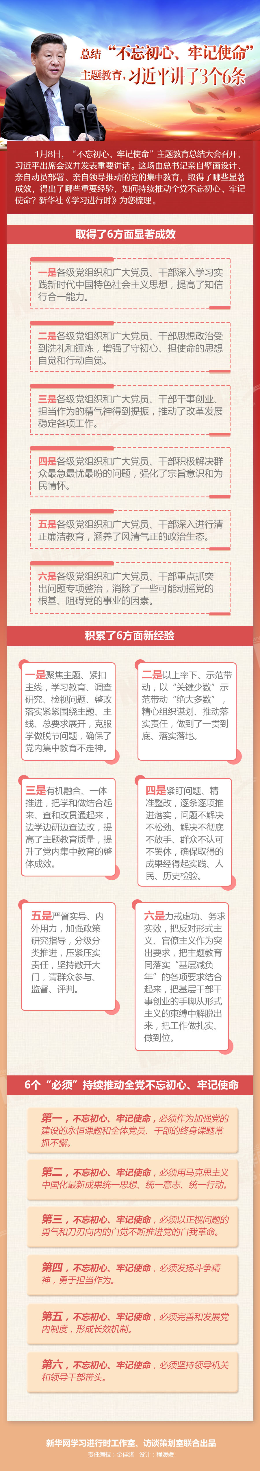 總結“不忘初心、牢記使命”主題教育,習近平講了3個6條