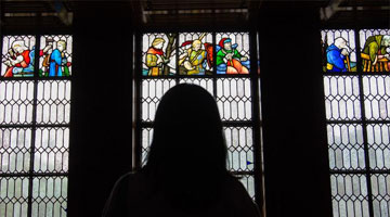 这是4月28日在北京故宫博物院拍摄的黄色缎绣缀砗磲璎珞衣。