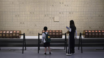 6月26日,游人在河南省安阳市殷墟遗址甲骨碑廊游览。