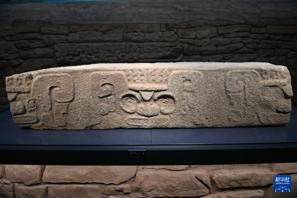 这是11月29日拍摄的石峁博物馆展出的石雕。